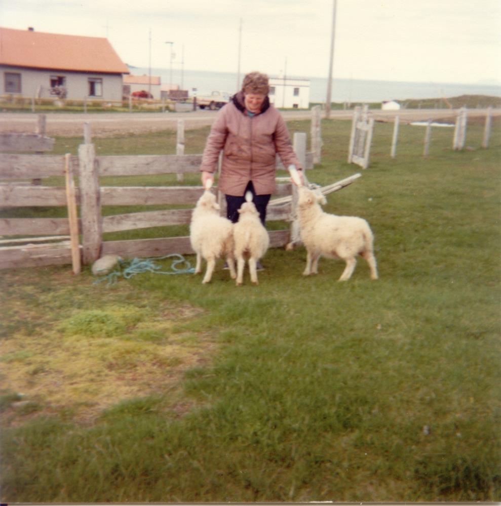 Elínborg gefur þrem heimalningum í einu.
