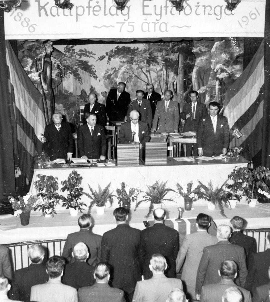Aðalfundur KEA 1961. Fundarstjóri Jónas Kristjánsson mjólkursamlagsstjóri fundarstjóri.