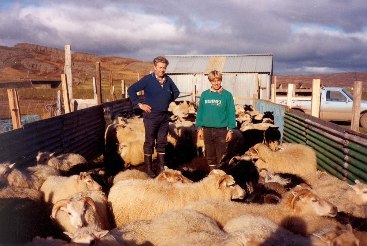 Jón Loftsson og Haraldur V. A. Jónsson í fjárragi í litlum stekk í Stakkamýrinni.