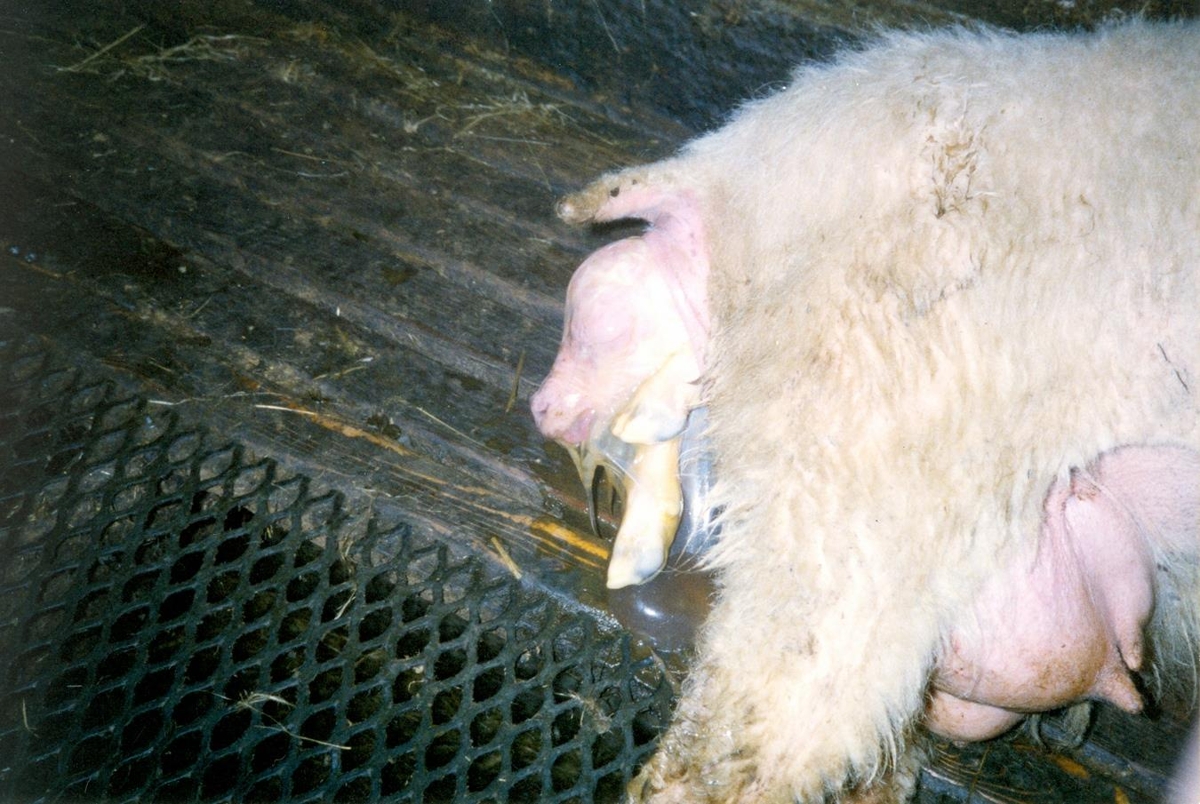 Sauðburður í Húsavík. Lamb kemur í heiminn.