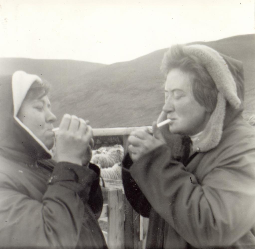 Signý Sigmundsdóttir og Fríða á Undralandi fá sér rettu í réttunum.