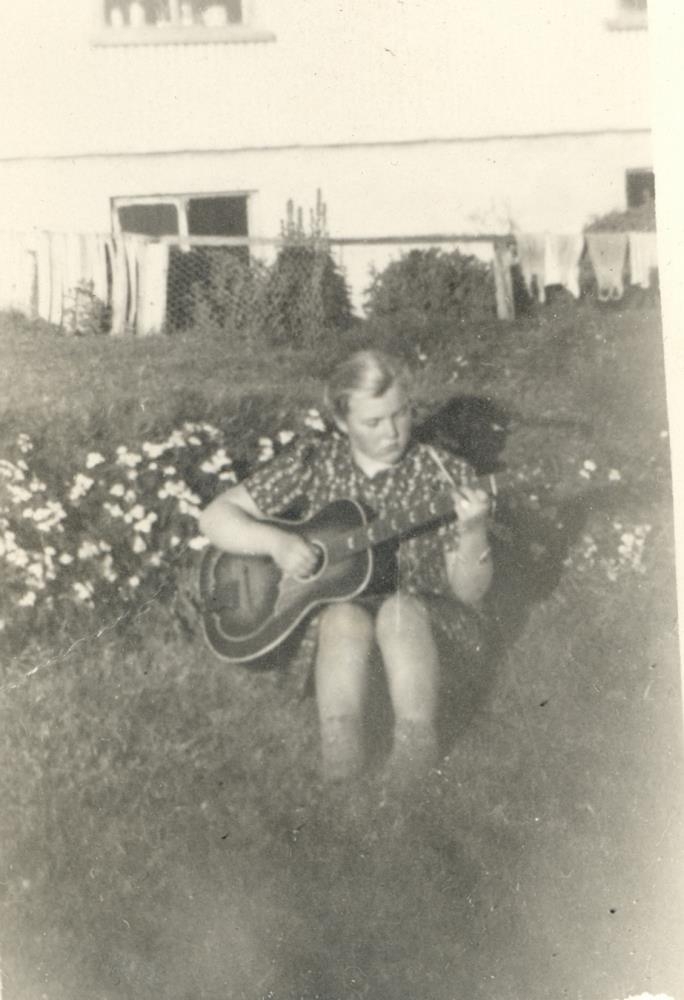 Laufey Eysteinsdóttir með gítarinn sinn.