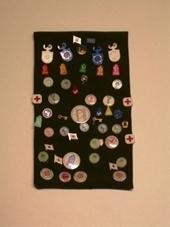 og frá ýmsum félögum, 52 að tölu. Þau eru fest á grænan púða úr gerviefni.