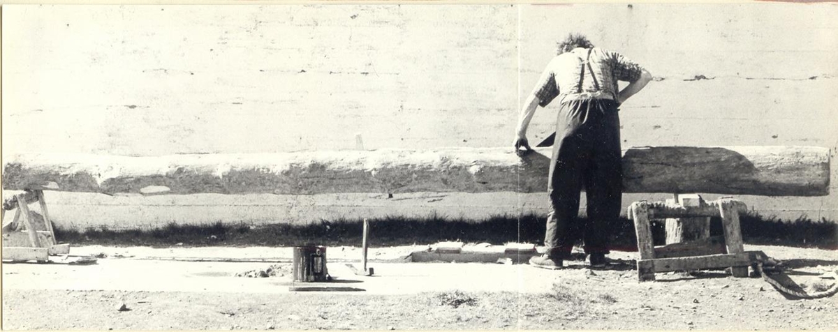 Skemmtilegar myndir með ólíku sjónarhorni af Jóni Jónssyni bónda á Broddanesi þar sem hann er að saga rekadrumb langsum. Myndirnar tók Hörður Hauksson sumarið 1982, en Jón var þá 74 ára gamall. Hörður var þá í heimsókn á Broddanesi, en áður í sveit hjá Stefáni Jónssyni á Broddanesi.