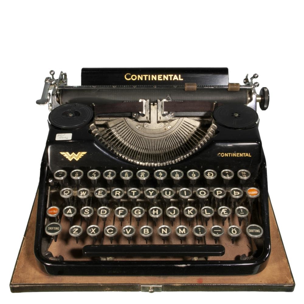 Ritvél af gerðinni Continental í tösku, sennilega frá tíma Fríðu Proppe. Úr eigu Akranes Apótek.