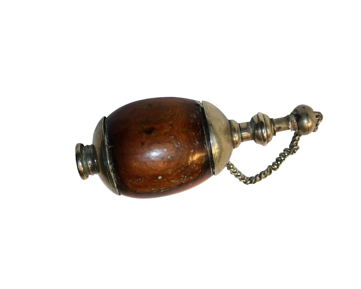 Tóbaksbaukur úr harðviði. Baukurinn er silfurbúin.