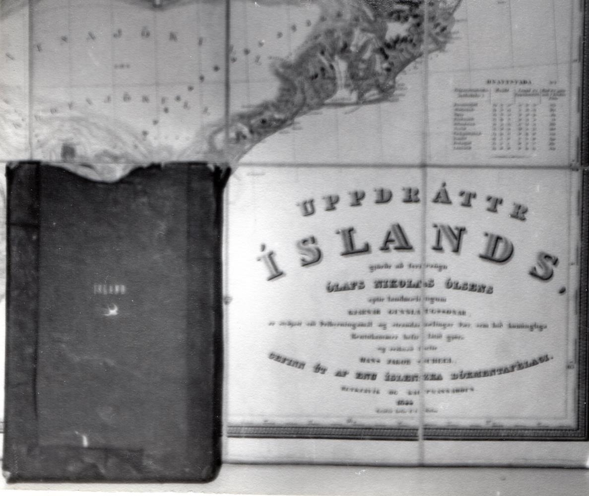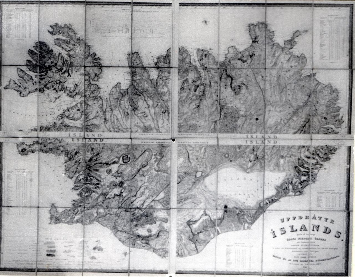 Litprentað Íslandskort Björns Gunnlaugssonar, sem gert var eftir mælingum Bjöns. Gefið út af Hinu Íslenzka Bókmenntafélagi 1844. Er í fjórum pörtum en upplímt á léreft. Þegar er brotið saman eru partarnir í svörtu hulstri merktu Ísland. Þetta kort var í eigu Þorvaldar Thoroddsen en Pálfríður Helgadóttir gaf Haraldi.