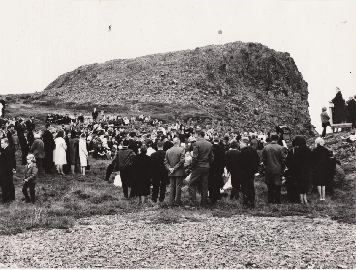 Vígsla minnisvarða Auðar djúpúðgu á Krosshólaborg 8. ágúst 1965.