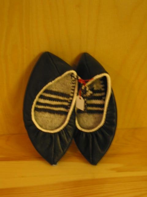 Barnaskór úr svörtu leðri og hafa aldrei verið notaðir með slyngdum rósaleppum (ausfirskum). Gerði og prjónaði Anna Gunnarsdóttir í Dagverðargerði í Hróastungu (f. 1899). Sigríður Árnadóttir (frá Heykollsstöðum á Hróarstungu), ráðskona á Elliheimilinu á Akranesi, gaf byggðasafninu, í ágúst 1970.