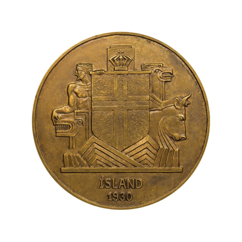 Þessi minnispeningur var gefinn út af nefnd Íslandsvina í París í tilefni Alþingishátíðarinnar árið 1930. Peningurinn var sleginn í myntsláttu Frakka eftir mynd Ásmundar Sveinssonar myndhöggvara og gengur hann oft undir nafninu Ásmundarskjöldurinn. Peningurinn var afhendur konungi, ríkisstjórn, þingmönnum og fleirum ásamt því að vera seldur. Peningurinn var endursleginn um 1970.