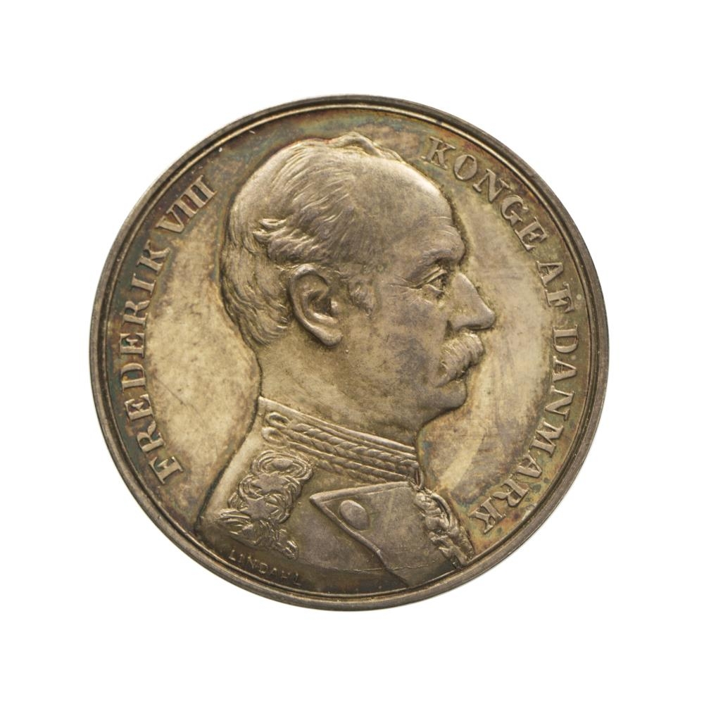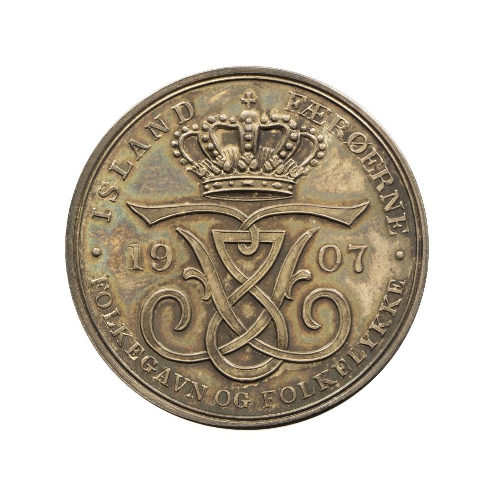 Þessi minnispeningur var búinn til af Fjármálaráðuneiti Danmerkur fyrir heimsókn Friðriks áttunda konungs Danmerkur til Íslands og Færeyja árið 1907. Öll þekkt eintök peningsins fann Johan Christian Holm myntkaupmaður í Danmörku.