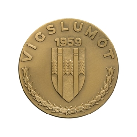 Þessi minnispeningur var búinn til af Íþróttabandalagi Reykjavíkur árið 1959 vegna vígslu íþróttavallar í Laugardal.