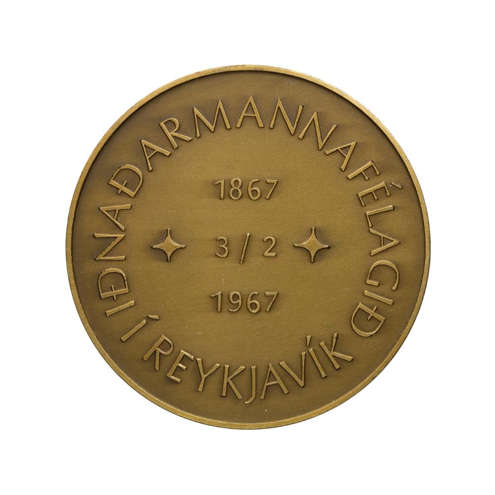 Þessi minnispeningur var búinn til af Iðnaðarmannafélagi Reykjavíkur í tilefni 100 afmæli félagsins.