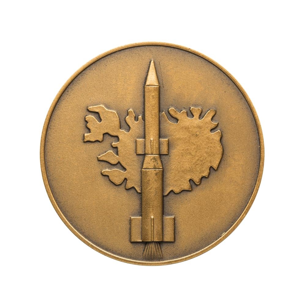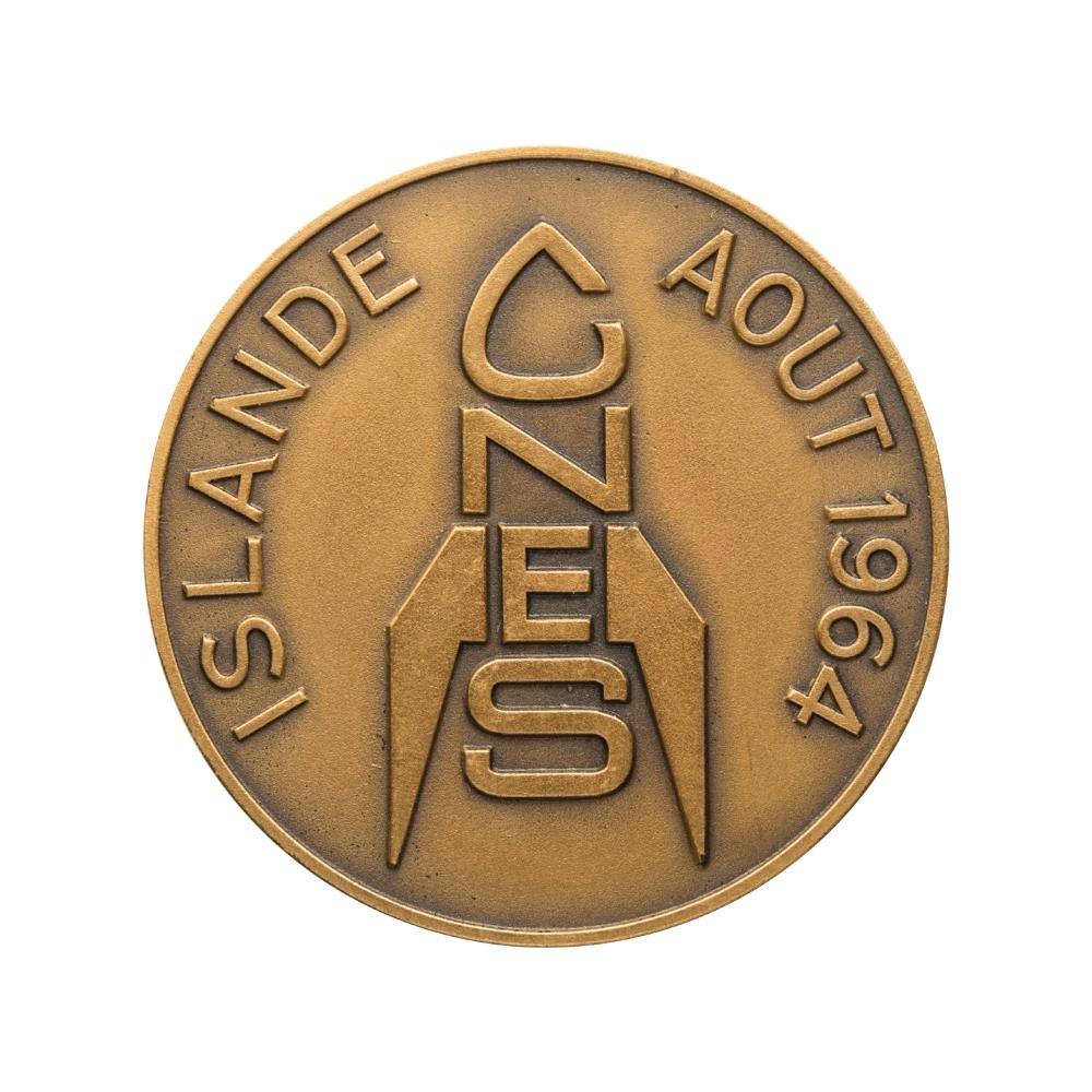 Þessi minnispeningur var búinn til af Frönsku geimvísindastofnuninni í tilefni af geimskoti þeirra á Íslandi árið 1964.