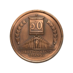 Þessi minnispeningur var búinn til af íþróttasambandi Íslands í tilefni íþróttahátíðarinnar sem haldin var í Laugardal árið 1970.