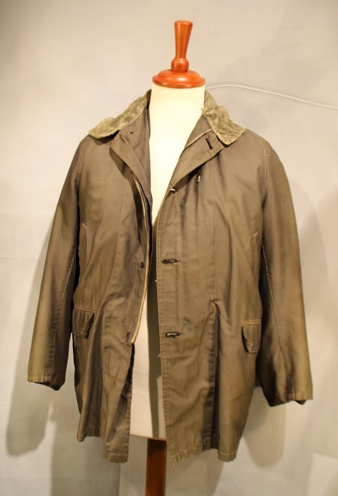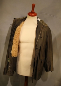 Úlpan er mosagræn með gulu (áður ullarhvítu) gærufóðri. Áletrun: Canadian Mist - 65% combed cotton - 35% nylon - Silicon water repellant Duplan - Fabric woven in Canada. Notkunartími úlpunnar mun aðallega hafa verið á Reyðarfirði, en hún er framleidd í Reykjavík. Stærð: 42. Sjá skýringu með I-2003-781.