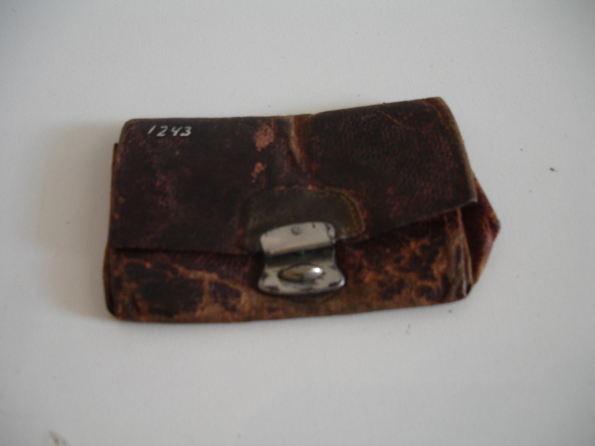 Lítil peningabudda úr leðri með tveimur hólfum. Var í eigu Gísla Jónssonar á Hofi í Svarfaðardal.