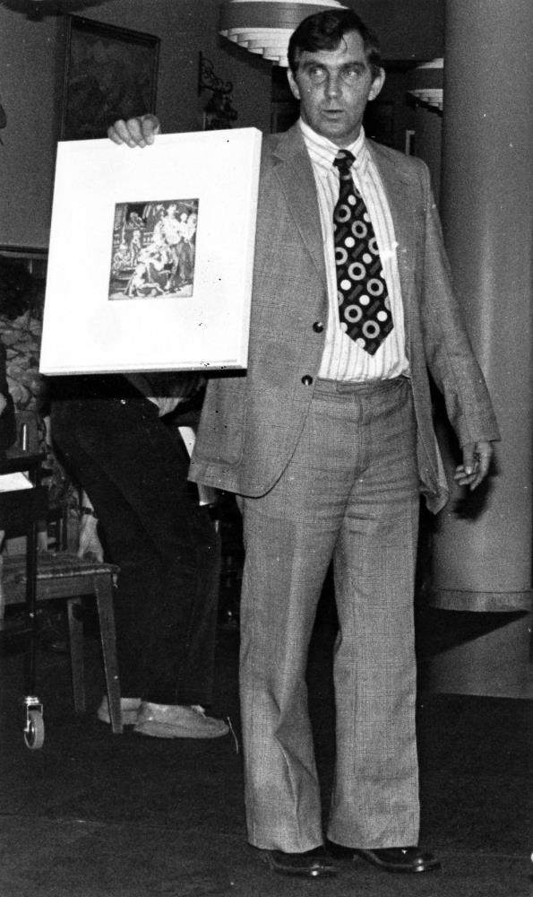 Listmunauppboð á Hótel KEA 1980, Gunnar Sólnes sýnir verkin.