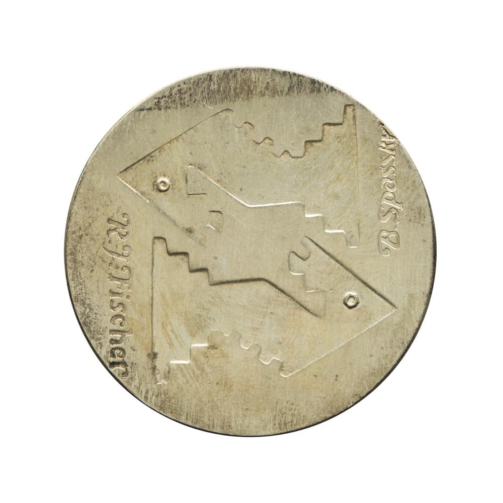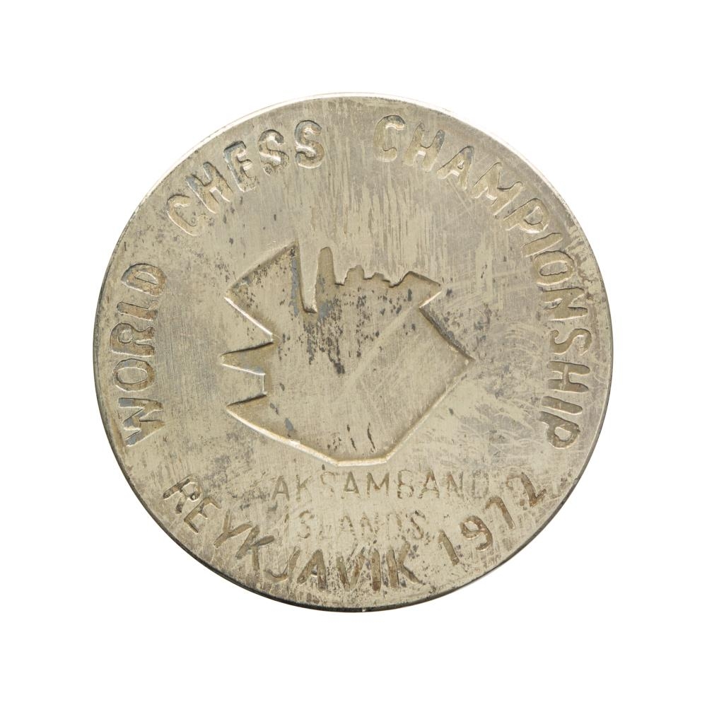 Þessi minnispeningur var búinn til af Skáksambandi Íslands fyrir Heimsmeistarakeppnina í skák sem halding var á Íslandi árið 1972. Þessi peningur tilheyrir fyrstu útgáfu af þeim peningum sem Skáksambandið bjó til fyrir keppnina.