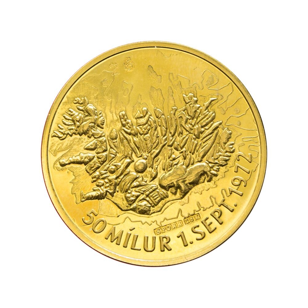 Þessi minnispeningur var búinn til af útflutningssambandi gullsmiða Í tilefni af útfærslu fiskveiðilögsögunnar árið 1972. Allur ógóði af sölu peninganna rann í Landhelgissjóðs.