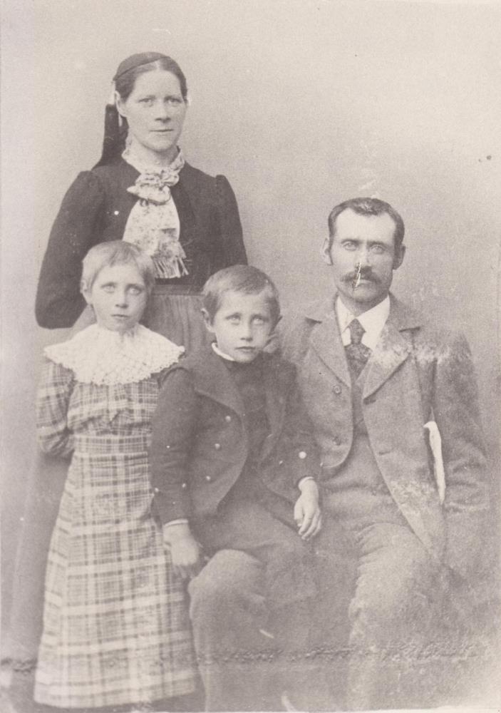 Guðfinna Einarsdóttir (1897-2006), Signý Halldórsdóttir (1868-1955), Jón Jóel Einarsson (1898-1947) og Einar Einarsson (1870-1942) á Leysingjastöðum, Hvammssveit, Dalasýslu.