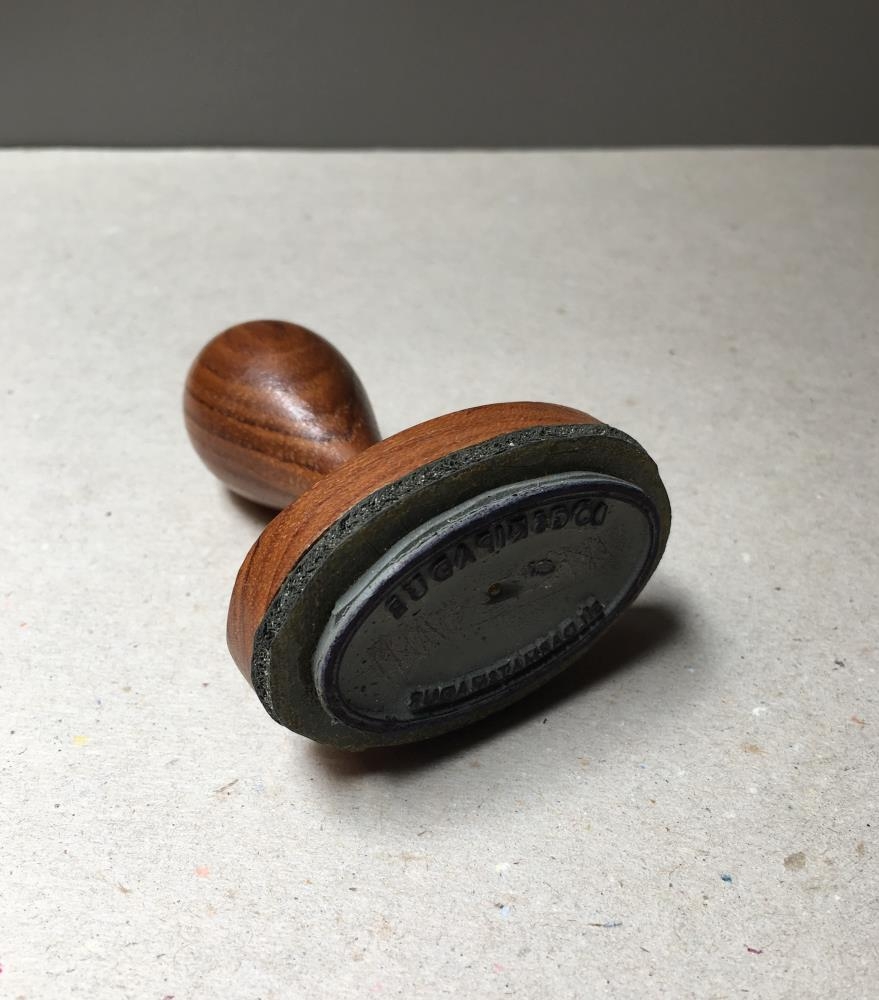 Stimpill, áletrun: Lögskipaður síldarmatsmaður. Stimpillinn var gefinn ásamt öðrum stimplum og ýmsum skjölum tengdum síldarmati af síldarmatsmanninum Ásgrími Kristjánssyni (1928-2004). Ásgrímur vann lengi við síldarmat og var talinn mjög fær í sínu fagi, fyrst hjá Síldarmati ríkisins og síðar Framleiðslueftirliti sjávarafurða sem varð til við sameiningu Síldarmatsins og Fiskmats ríkisins árið 1974.