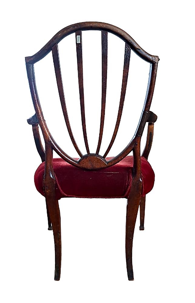 Stólinn svipar til stóla sem hannaðir og smíðaðir voru af Georg Hepplewhite (1727-1786) á 18. öld,