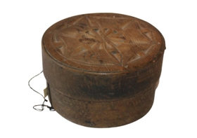 Öskjuna átti Guðrún Sigurðardóttir í Nýjabæ á Akranesi (f.1850 á Ölvaldsstöðum í Borgarhreppi ,d.1935). Guðrún var kona Gunnars Árnasonar (Nála-Gunnars). Öskjuna átti á undan henni móðir hennar. Guðrún notaði öskjuna undir brenndar kaffibaunir. Hún gaf öskjuna fyrir dauða sinn nöfnu sinni ,Guðrúnu Jónsdóttur á Geirsstöðum á Akranesi (kona Arthúrs Eyjólfssonar) en hjá henni dvaldist Guðrún síðustu 6 árin og dó á heimili hennar. Guðrún gaf safninu öskjuna 1958.