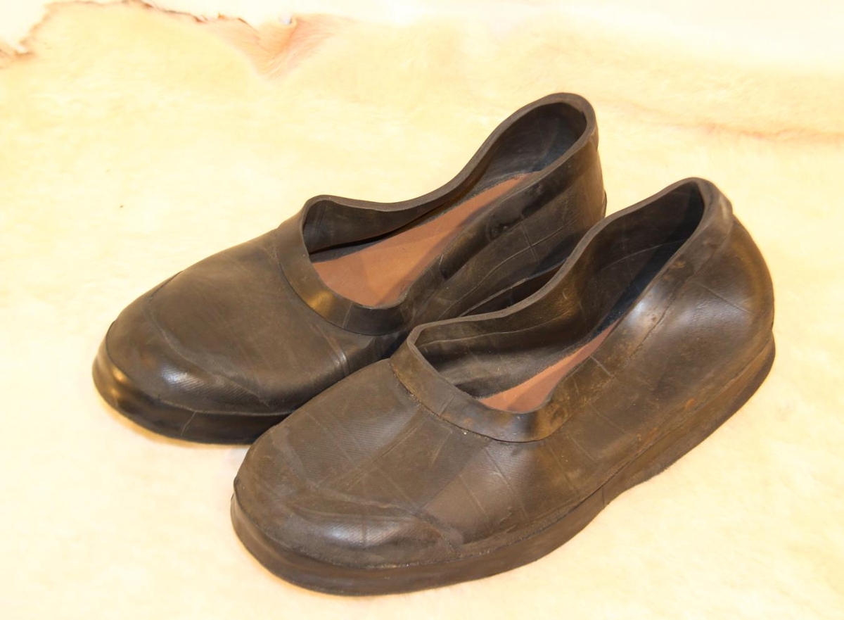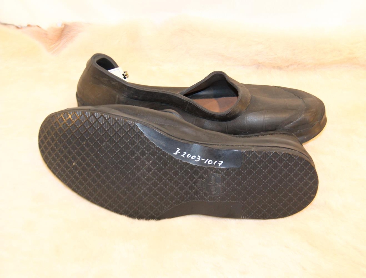 Gúmmískórnir eru svartir að lit með samlitum sóla sem hefur vörumerkið "Praline". Skórnir voru notaðir af gefanda en augljóslega ekki mikið. Stærð: 42.