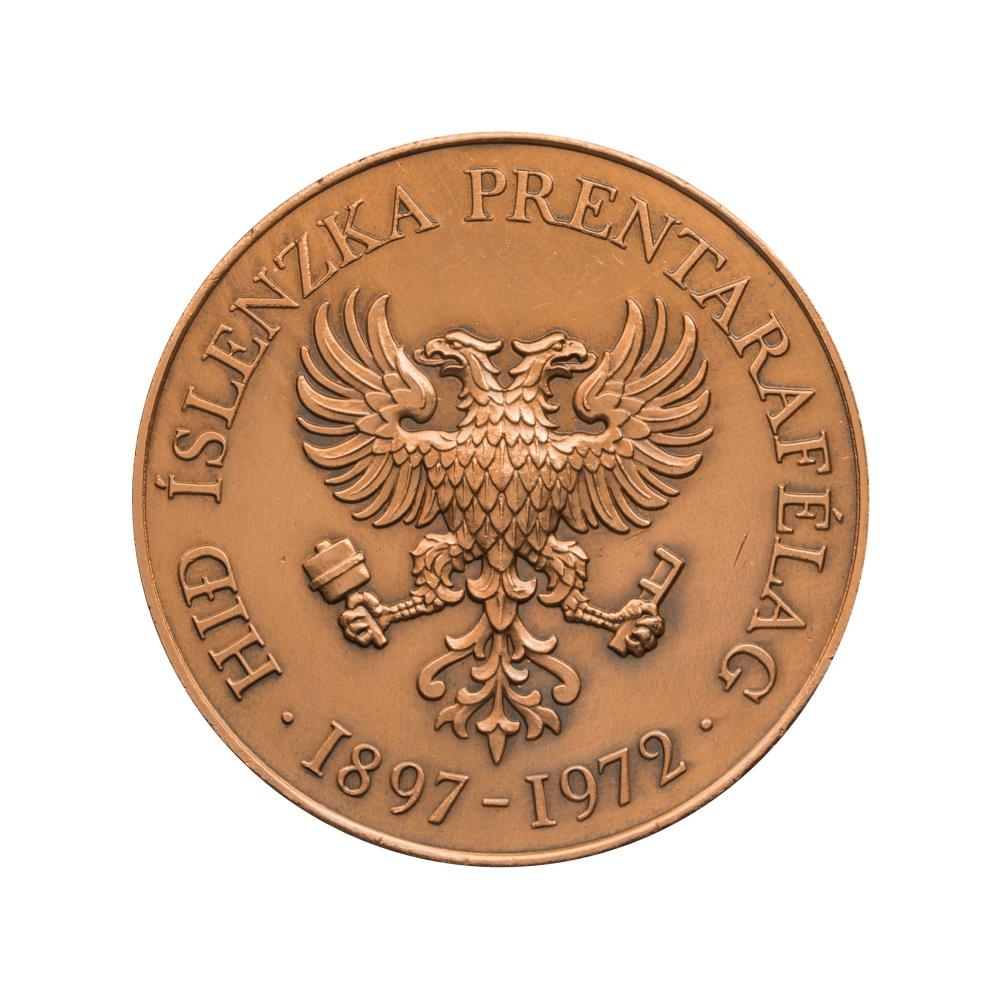 Þessi minnispeningur var búinn til af hið Íslenska prentarafélagi í tilefni af 75 ára afmæli félagsins.