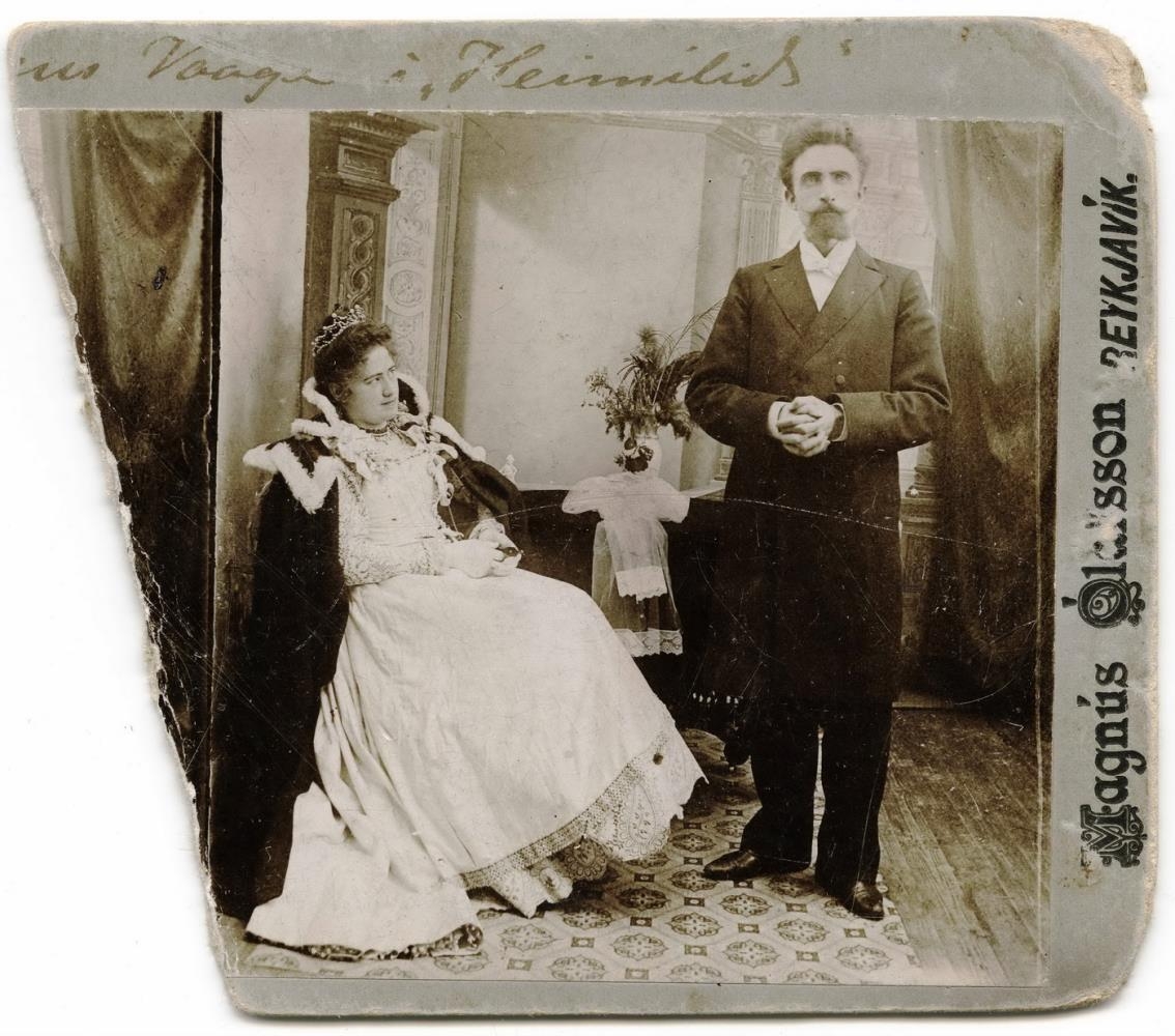„Stefanía Anna Guðmundsdóttir (1876 - 1926) og sennilega Jens Benedikt Eggertsson Waage (1873 - 1938), árið 1902.“ (PBB 2019)