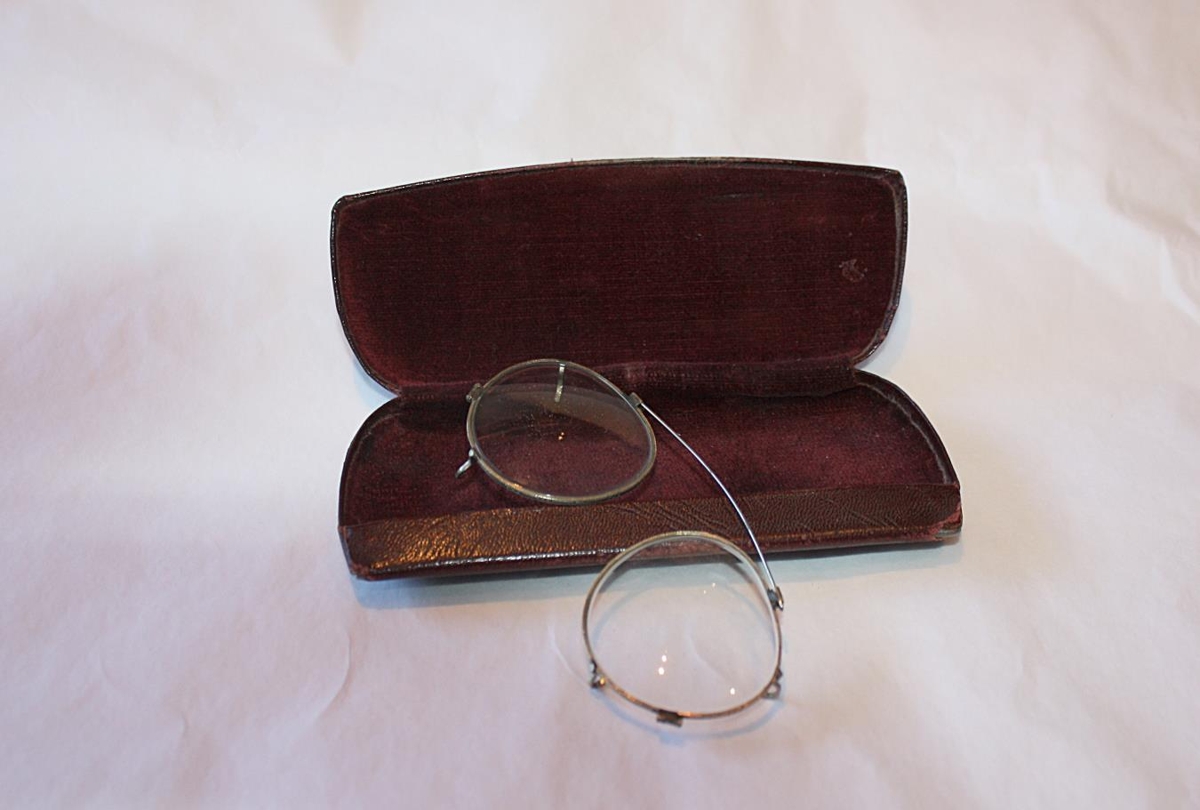 Er í rauðbrúnu hulstri merktu; Gleraugnasalan Lækjargata 5A ,Reykjavík.