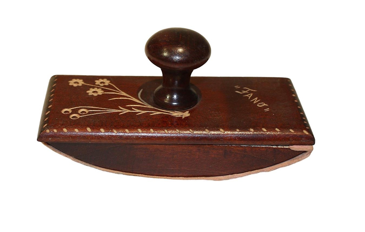Blekþerririnn er minjagripur frá Danmörku (Vanö). Er úr búi Sveins Guðmundssonar, hreppstjóra í Mörk á Akranesi. Gef: Petrea Sveinsdóttir, Mörk, Akranesi.