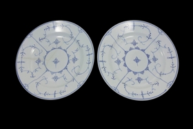 Diskarnir tveir eru úr hvítum ,skrautmálaðir með bláum lit.