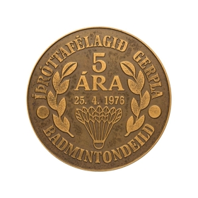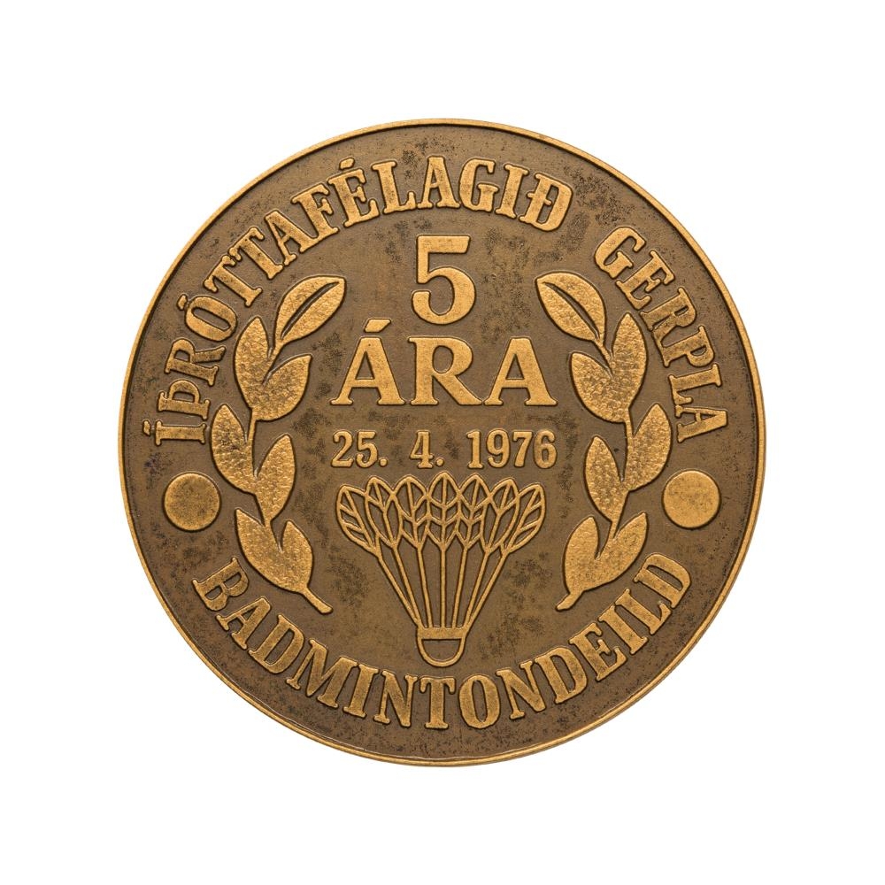 Þessi minnispeningur var búinn til af badmintonsdeild Gerplu í tilefni af 5 ára afmæli Íþróttafélags Gerplu.