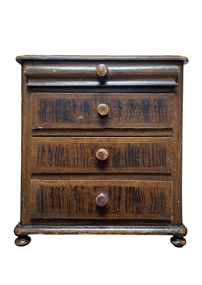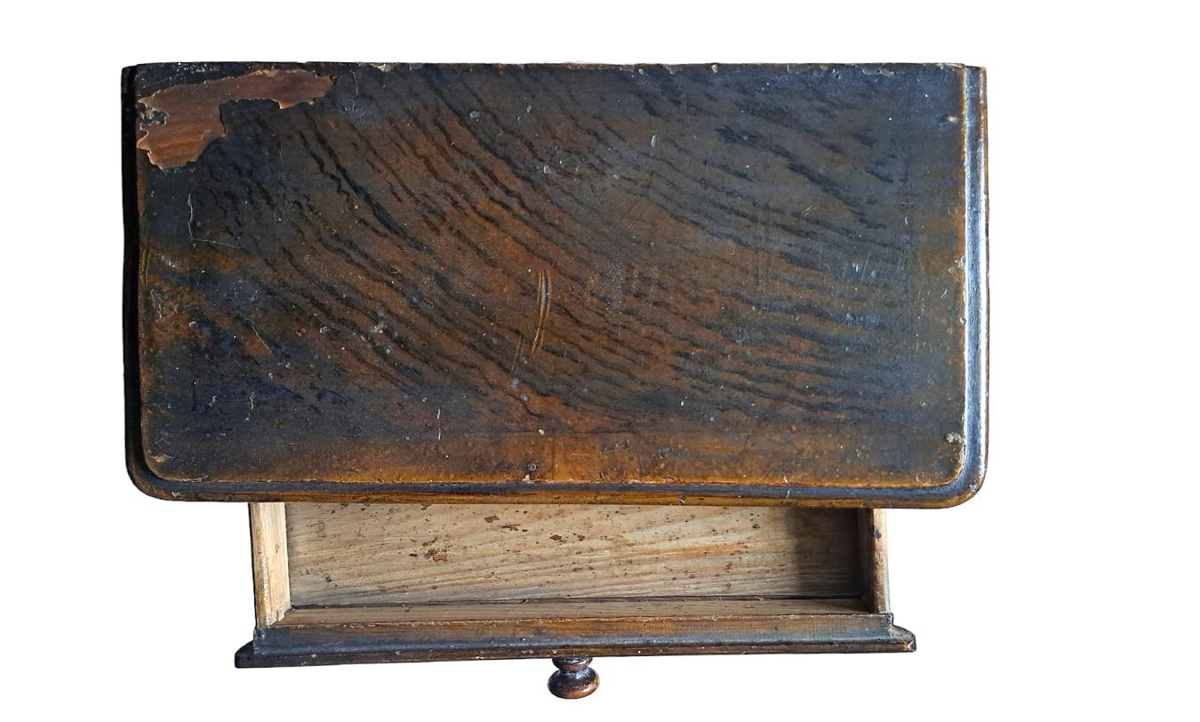 Kommóða (lítil) smíðuð af (fyrir 1895) Ármanni Þórðarsyni (f.1868-d.1929) frá Fiskilæk í Melasveit , handa systur sinni ,Halldóru Þórðardóttur ,húsfreyju á Síðumúla í Borgarfirði (d.1895). Ármann var lærður smiður og var sveinstykki hans altarið í Akraneskirkju, en han bjó á Akranesi 1895-1902 ,var fyrsti organisti kirkjunnar. Eftir lát Halldóru eignaðist kommóðuna Jóhanna Ísleifsdóttir (f.9 sept. 1887) fósturdóttir Halldóru og áður móður hennar Sigríðar Runólfsdóttur ljósmóður á Fiskilæk. Jóhanna var um tíma vinnukona á Akranesi ,en síðan ráðskona í Reykjavík. Gef: Jóhanna Ísleifsdóttir ,í júlí 1970.
