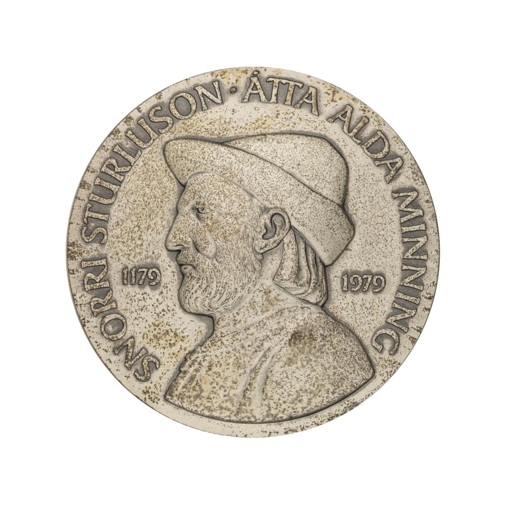 Þessi minnispeningur var búinn til fyritækinu Ís-spor í tilefni átta aldar minningar Snorra Sturlusonar.