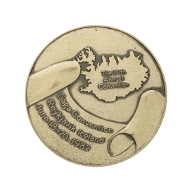 Þessi minnispeningur var búinn til af Kiwanis á Íslandi vegna ársþings evrópusambands Kiwanis.