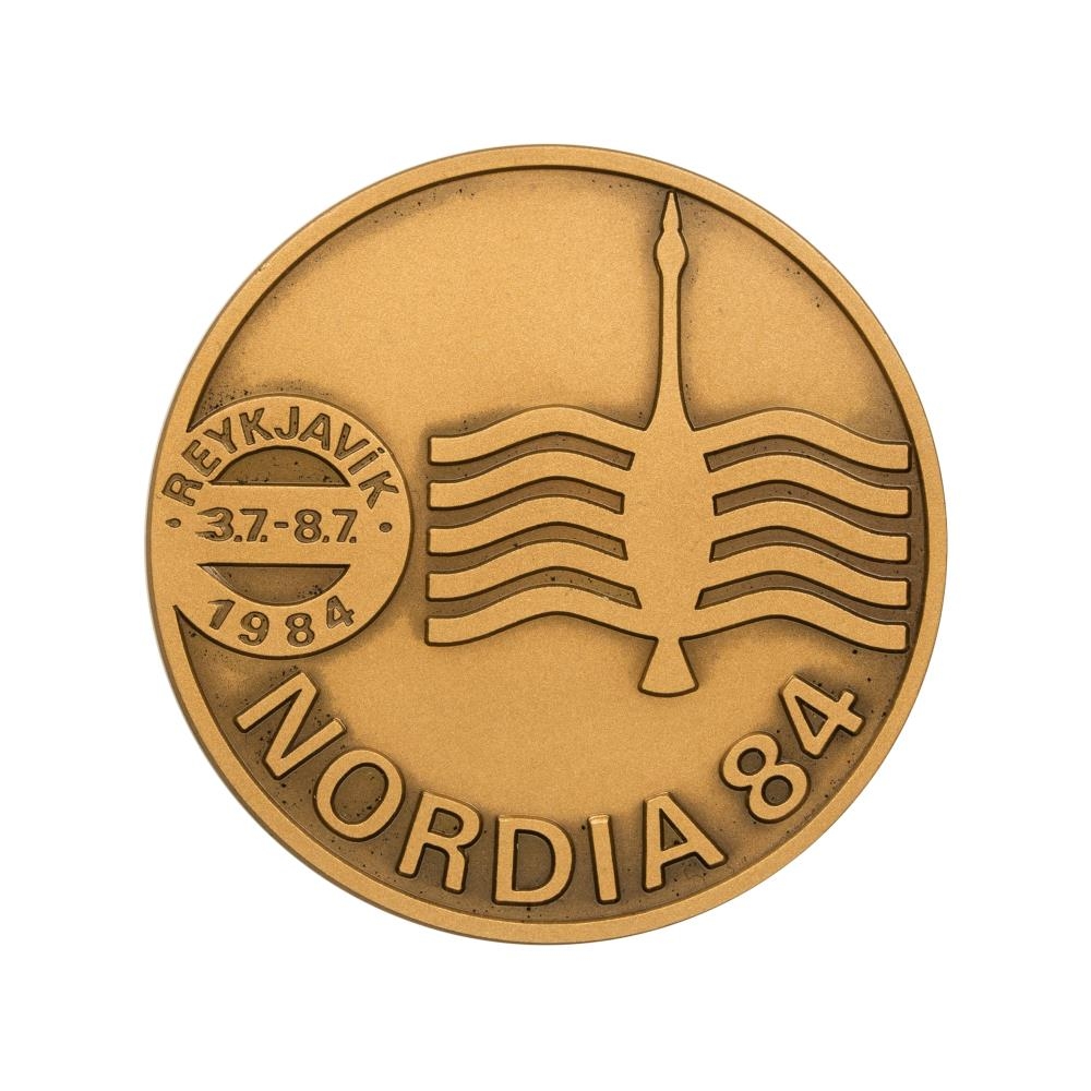 Þessi minnispeningur var búinn til af Landssambandi íslenskra frímerkjasafnara í tilefni af NORDIA frímerkja sýningunni sem haldin var á Íslandi árið 1984.