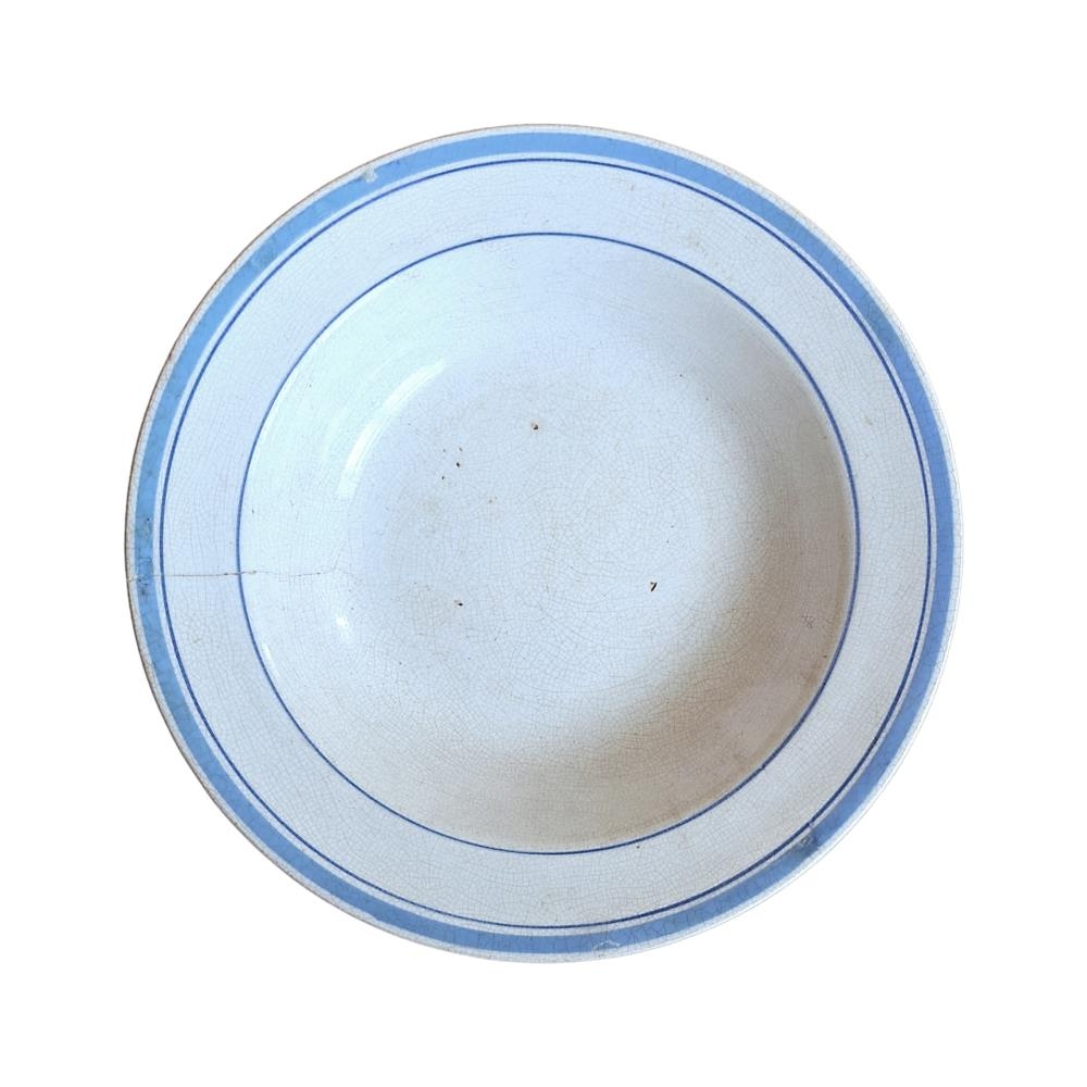 Súpuskál hvít í grunninn með þremur bláum röndum