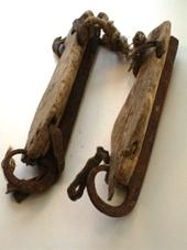 Skautarnir eru lélegir, timbrið slitið, járnið ryðgað og leðurólar slitnar af. Járnin eru alls um 38 cm löng, 26 cm þá hringbeyging í lítið auga. Grafið hefur verið V ofan í annað skautatréð og H í hitt, en þau eru 24,5 cm löng. Skautarnir eru að öllum líkindum smíðaðir af Jóhannesi Sigurðssyni (1858-1942) smið er bjó um skeið í Ytra-Garðshorni, áður bóndi á Hæringsstöðum.