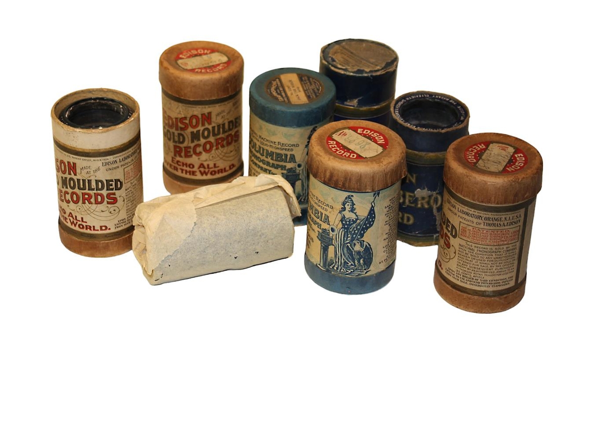 Grammófónkefli-Vaxhólkar er notaðir voru í "phonegraph"Edisons en það var fyrsta tegund af tæki sem hægt var að spila og fá fram hljóð .Kefli þessi eru flest merkt Edison og Columbia.Kemur 14/10 1998.Gef. Þórunn og Gyða Jónsd.,dætur Sr.Jóns M.Guðjónssonar fyrrv.sóknarprests á Akranesi