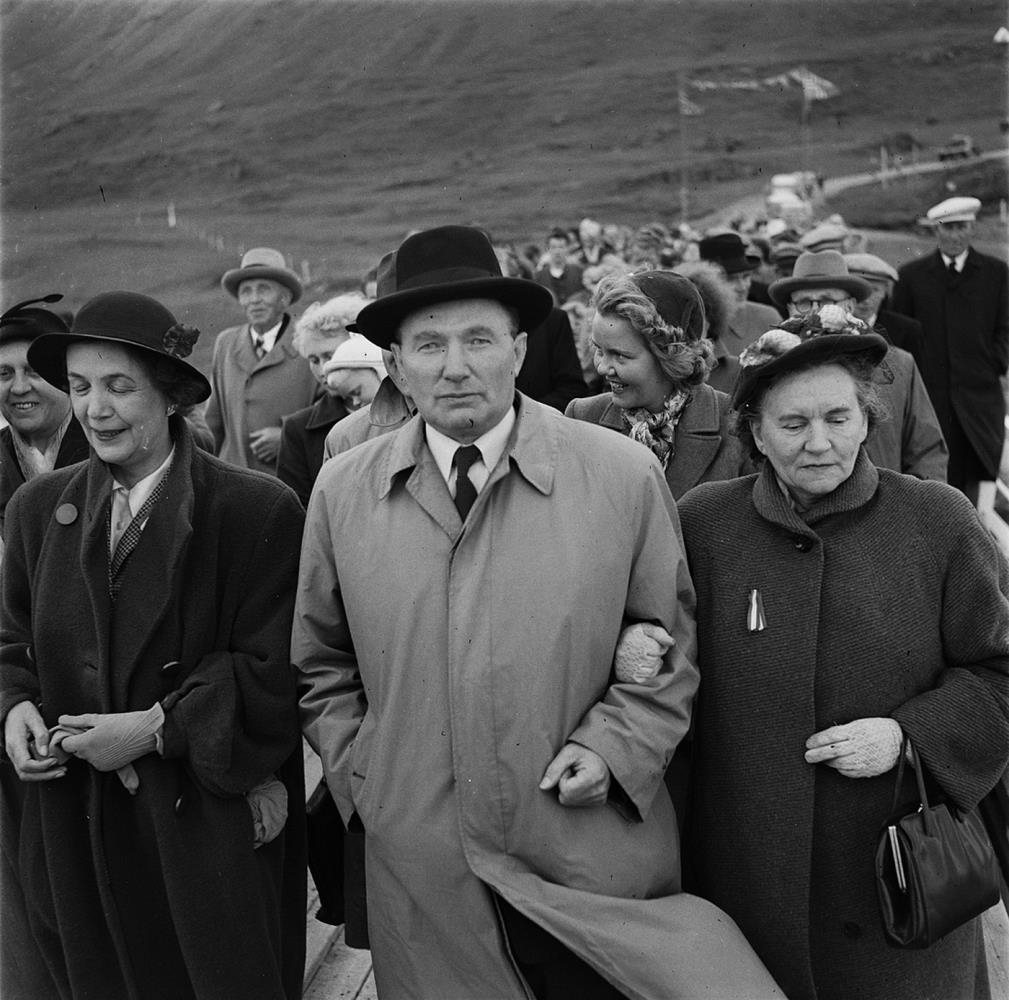 Fólk í fylkingu. Þekkja má Hólmfríði Zoëga, Bodil Bergtrup, Sigurð Jónsson, Hermann Jónasson og Vigdís Steingrímsdóttur.