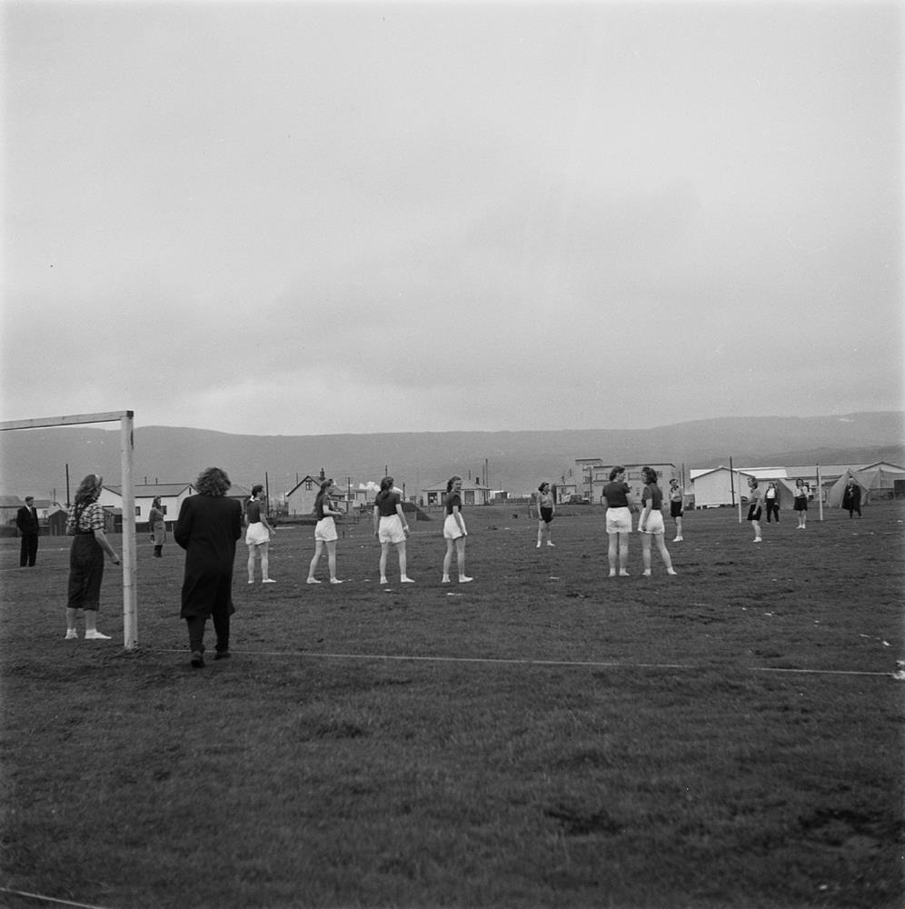Handboltakeppni á milli kvennaliða á útivelli. Landsmót Ungmennafélags Íslands.