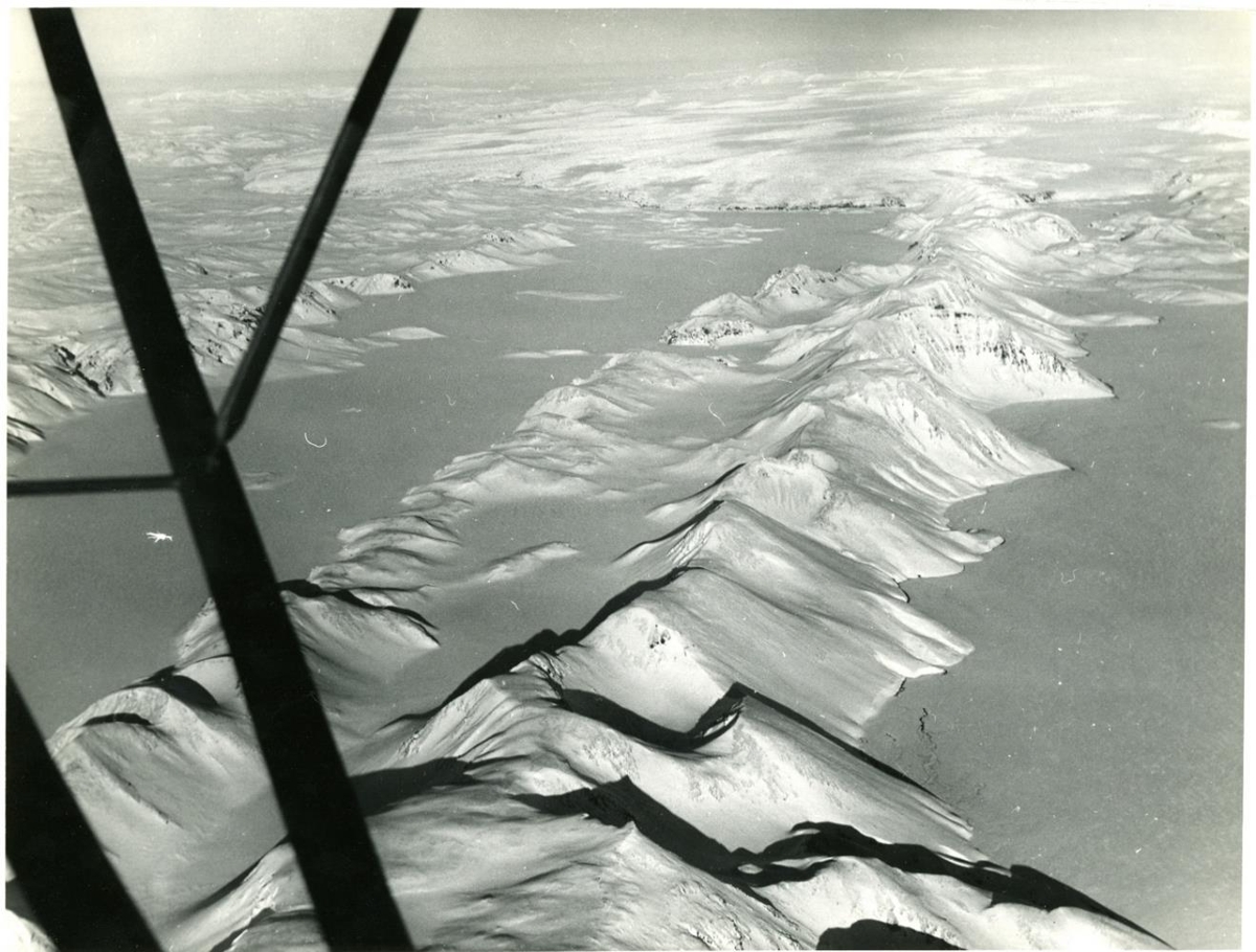 „Á myndinni sér yfir Fögrufjöll, með Langasjó vinstra megin og Skaftá til hægri. Fjær er Vatnajökull.“ (IE 2017)