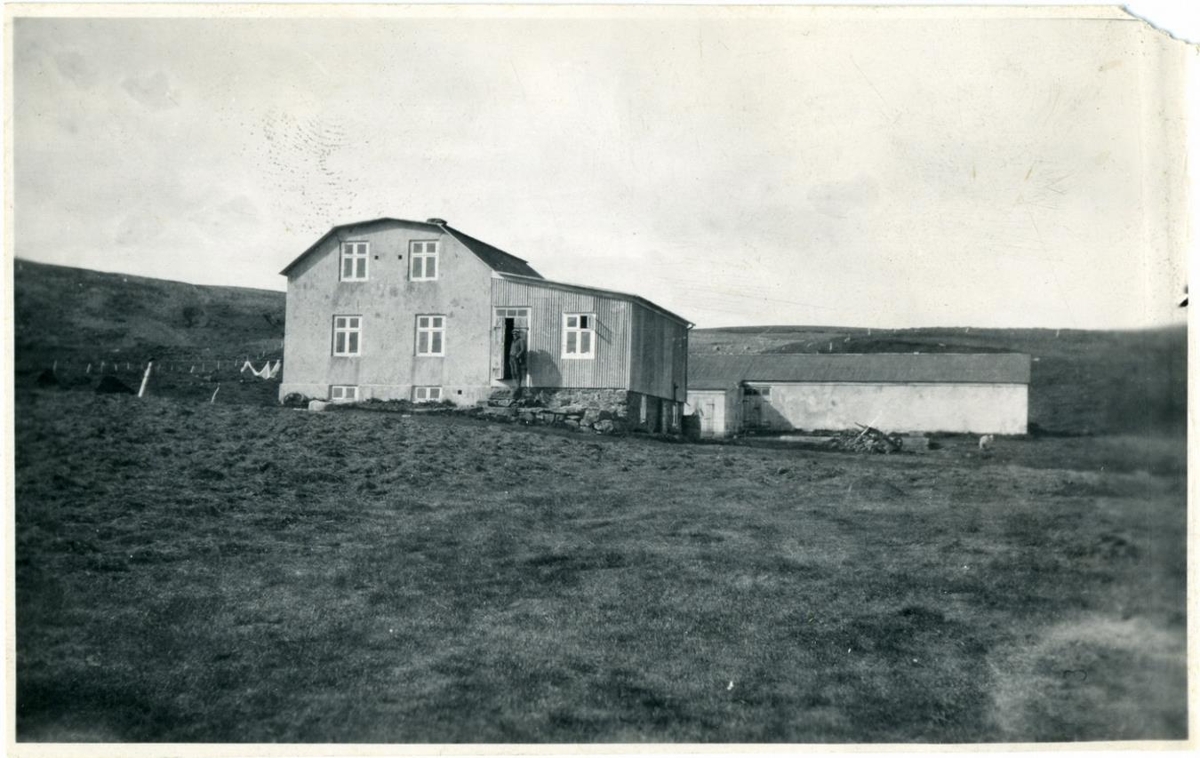 Sveitabær, íbúðarhúsið með Mansard-þaki. Á bakhlið er skrifað: „Kalmanstunga?“