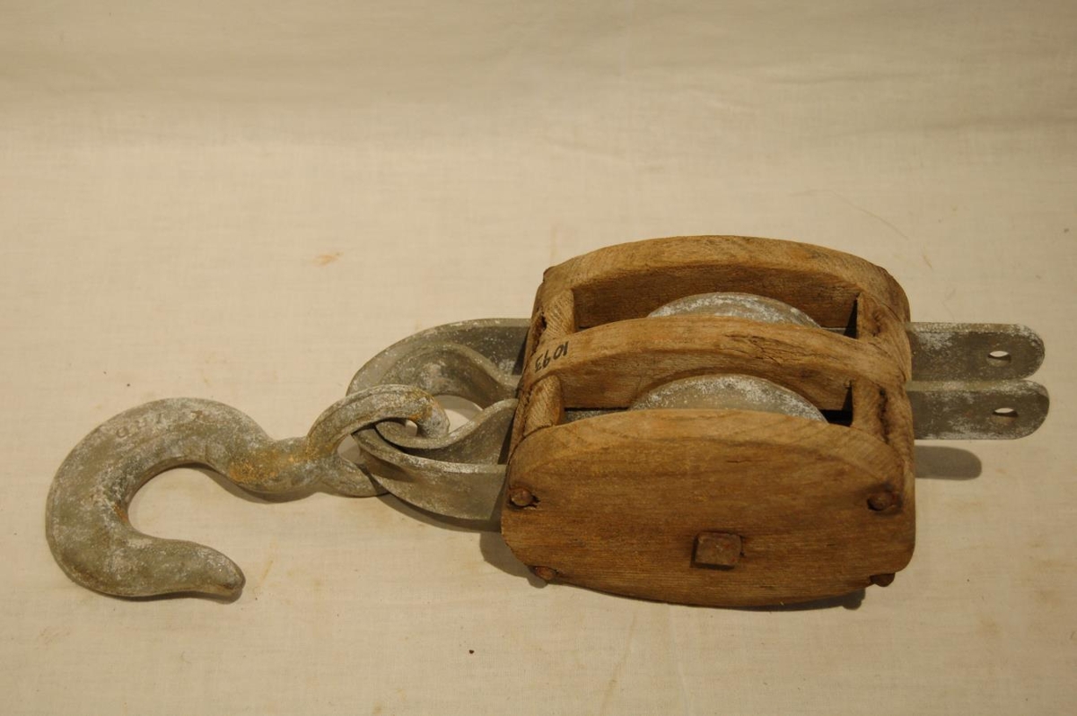 Talía úr við með málmkrók nokkuð heillegum en á hann er áletrað: Laird.
