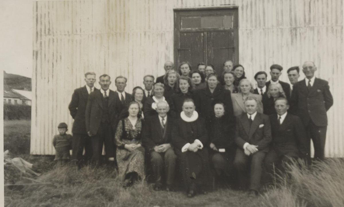 Kirkjukór Skeiðflatakirkju. Fremri röð: Kristín á Ketilsstöðum, Sigurður og Ásta í Litla-Hvammi, séra Jón Þorvarðarson, Sigurður Birkis söngmálastjóri og Brynjólfur á Dyrhólum. Mið röð: Guðrún Erlendsdóttir Norðurgarði, Helga Stefánsdóttir Litla-Hvammi, Svandís Salómonsdóttir Ketilstöðum, Vilborg Brynjólfsdóttir Dyrhólum, Gunnar Sigurðsson Litla-Hvammi, Ester Kristjánsdóttir N-Hvammi, Gunnar Þorsteinsson Ketilstöðum. Aftasta röð: Sigurður Brynjólfsson Dyrhólum, Sigþór Sigurðsson Litla-Hvammi, Óskar Þorsteinsson Garðakoti og Guðjón Þorsteinsson Ketilsstöðum.