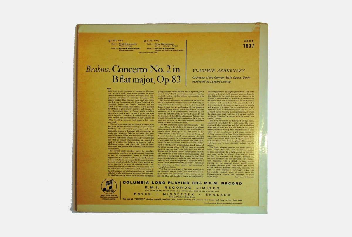 Píanókonsert í Bes eftir Brahms í flutningi Vladimirs Ashkenazy og Óperuhljómsveitar Berlínar undir stjórn Leopold Ludwig.