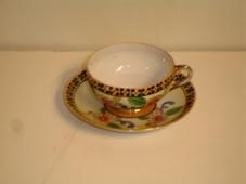 bæði á bolla og undirskál. Hanki á bolla er gylltur. Þvermál undirskálar